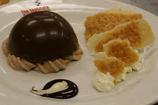 We then hastily proceeded to the logical next chapter in frozen desserts: sorbet. Sometimes referred to by the far less attractive name “water ices,” sorbets, it turns out, contain gelatine, a great surprise to me personally, and a problem for our few vegetarian students. A small amount of gelatine does, however, add inimitable smoothness to the texture of a sorbet. So if, like me, you’ve made sorbet successfully at home, and been pleased but not overwhelmed by the texture, try throwing in the tiniest bit of gelatine. It allows the consistency to far more closely mimic that of its dairy-laden cousin. The flavor which jumped out from our texts, to both my partner and to me, was tangerine. At the end of churning, we folded in a port wine syrup. This gave the pale orange sorbet a deep maroon marbling, and the sultry ribbons of deep and gracefully lingering flavor were a perfect complement to the brightness of the citrus. Chef winked when he tasted it, so I took that as a good sign. If you would like to make a port wine syrup at some point, please take the following under advisement. Bring the port gently to a boil, and then reduce it to a mere simmer. After a while, this simmer devolves, and you’ll have nothing more than a static pot of hot wine. Increase the heat only slightly at this point, and stay handy, because the simmer returns shortly and, the moment it seems stable and you walk away, a furious boil ensues. I couldn’t decide to be proud or embarrassed when the smell of our burning wine drew people in from other classrooms, to see what was the matter.